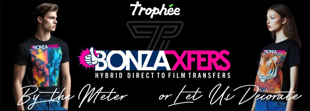 BonzaXfers – Trophée developed – hybrid direct to film High Quality Xfers – Supply & Print
